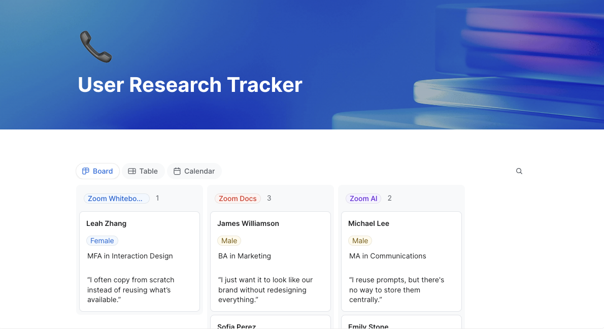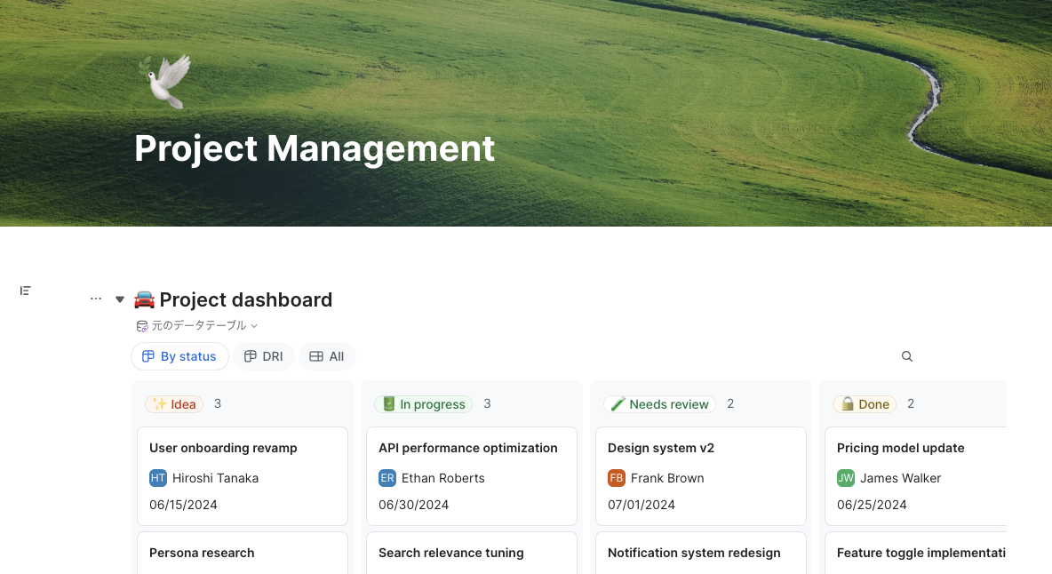 テンプレートは、会議議事録、プロジェクト管理、コンテンツ計画、提案書、ユーザーリサーチ、軽量 CRM など、一般的な業務シナリオごとに最適化されたフォーマットで構成されている。フォーマット設計やレイアウト調整に時間を取られることなく、チームは意思決定やコンテンツ作成といった本質的なコラボレーションに集中できる。